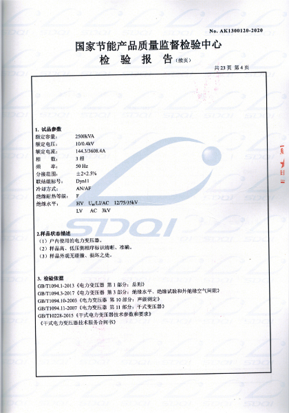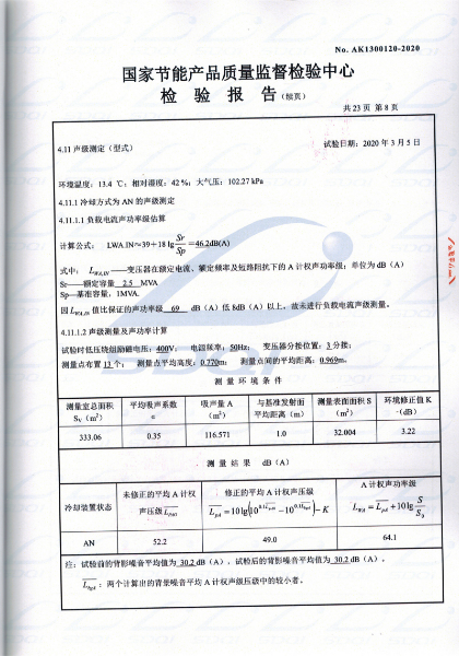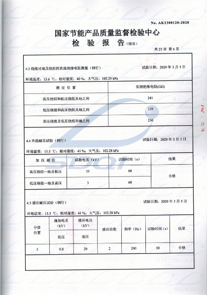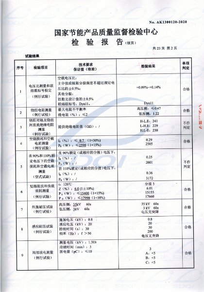 國(guó)家節(jié)能產(chǎn)品質(zhì)量監(jiān)督檢驗(yàn)中心 查詢編號(hào):AK1300120 查詢備案證書(shū)號(hào):GJJN-B-K2000120 批準(zhǔn)日前:2020-03-11 公司名稱:山東中能變壓器制造有限公司